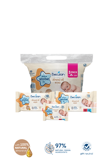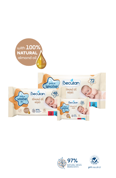 Влажните марамчиња Becutan со бадемово масло истовремено ја чистат и ја негуваат бебешката кожа. Формулацијата е збогатена со бадемово масло. Составот на Becutan влажните марамчиња со бадемово масло се базира на 97% состојки од природно потекло. Се препорачуваат за секојдневна нега и хигиена на нормална и чувствителна кожа.