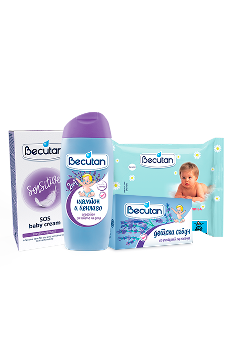 • Крем Becutan Sensitive SOS (75 ml) – идеален за нега и заштита на најчувствителната детска кожа која се соочува со состојби кои бараат интензивна нега и брзи резултати на подобрување. Формулацијата претставува комбинација од внимателно избрани состојки, како на пример ланолинот, пчелиниот восок, глицеринот, пантенолот и цинк оксидот, кои дејствуваат синергетски и обезбедуваат интензивна нега и хидратација на кожата, а воедно ја заштитуваат од агресивни надворешни услови какви што можат да бидат ветерот и студот.
